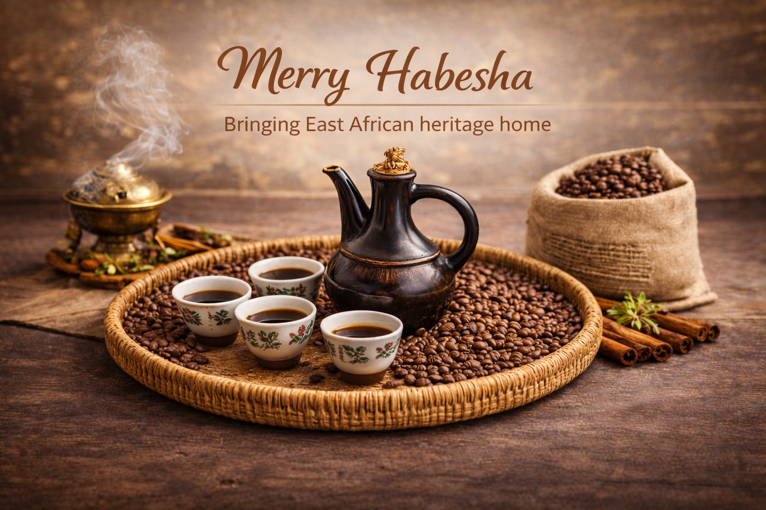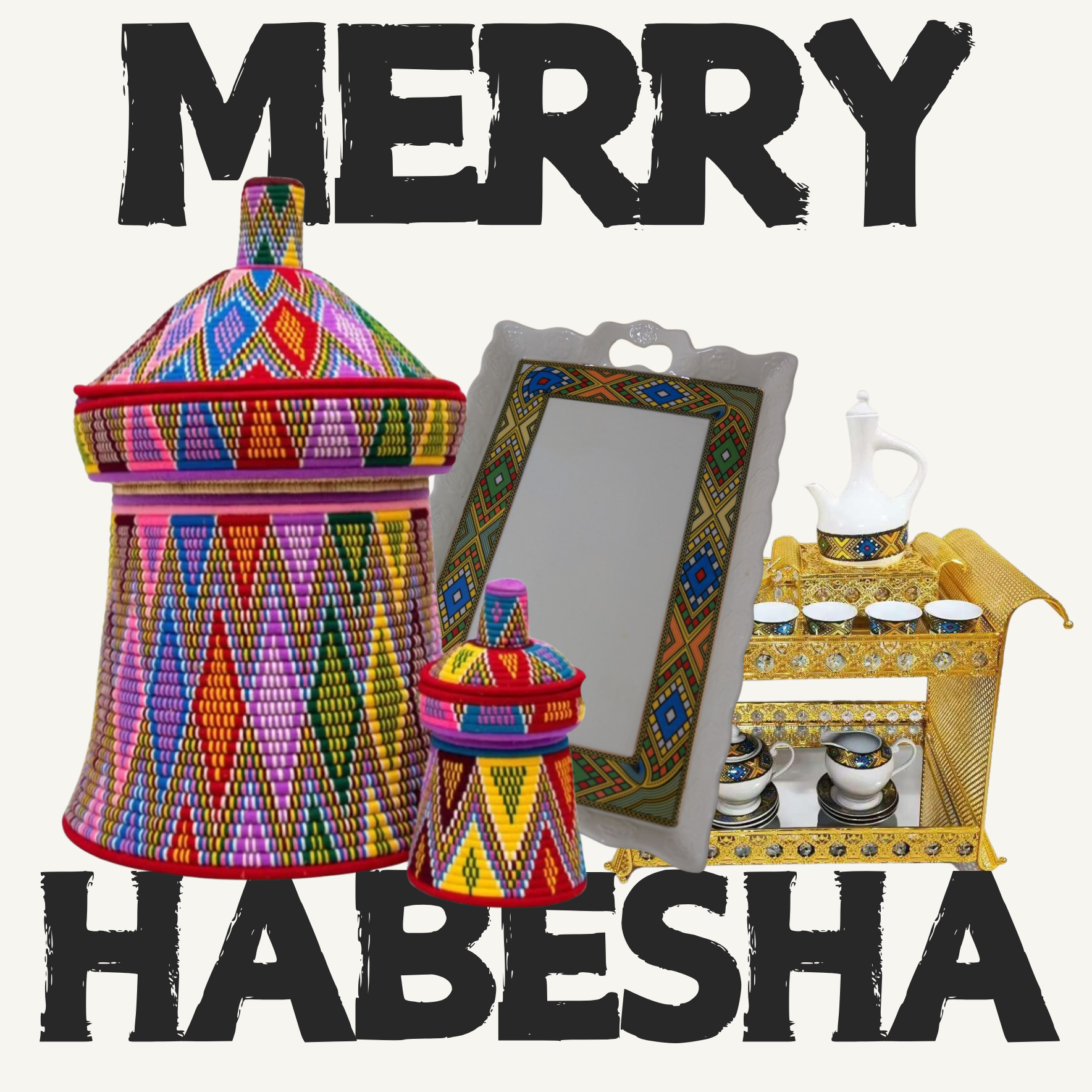 Traditional Eritrean- Ethiopian Coffee Set Gold Silver